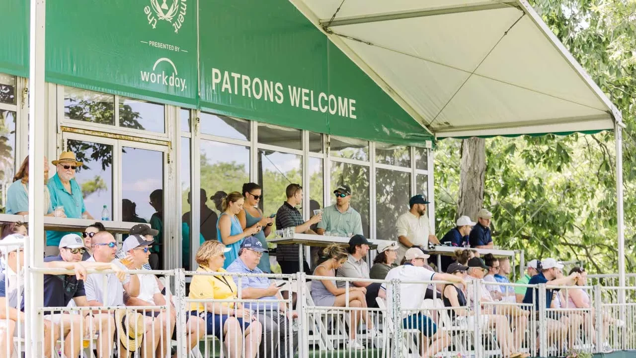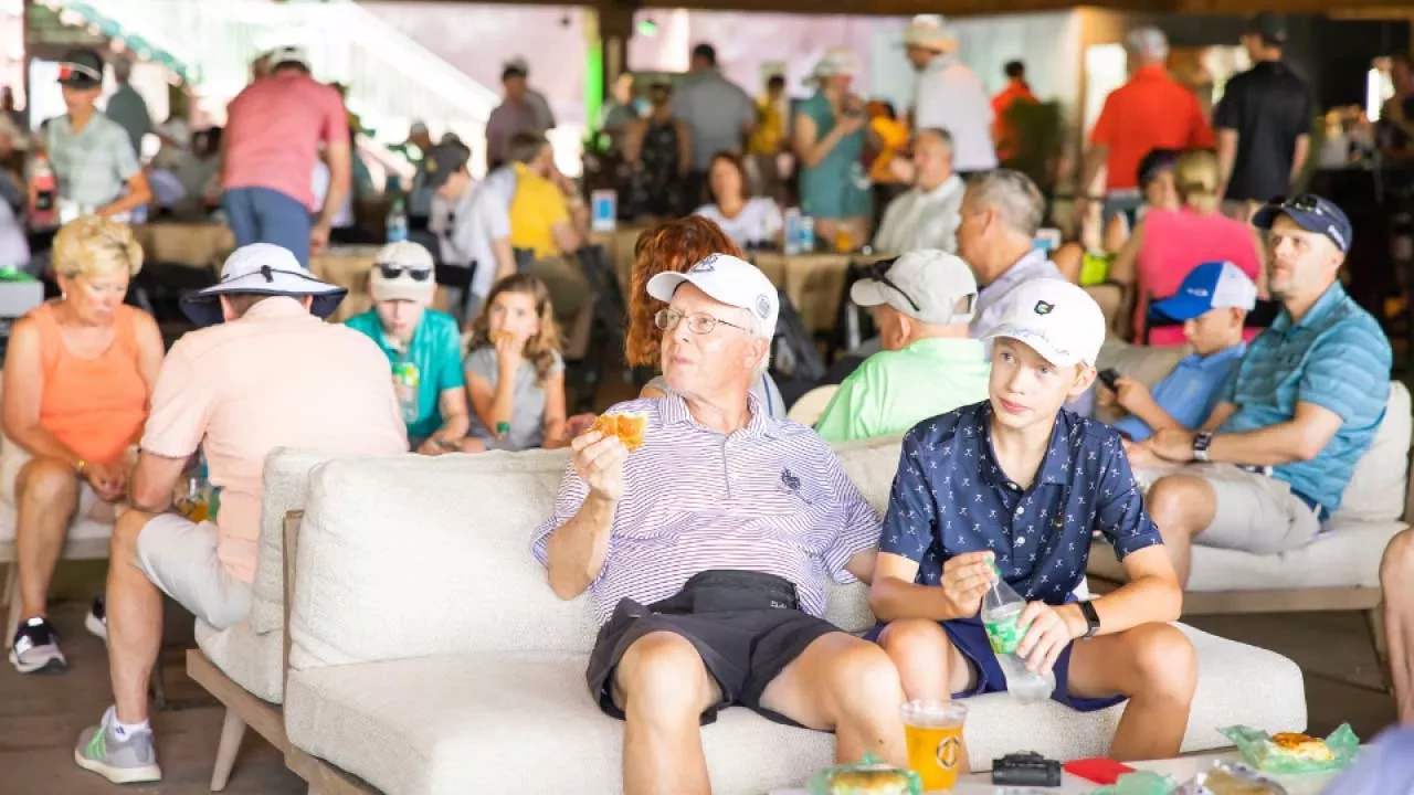 Take advantage of the shade in this covered, open-air venue located adjacent to the 18th green. Watch the action on TVs and enjoy food and full-beverage service in this fan-favorite location across from the main entrance. The Champions Pavilion includes the Meiomi Wine Bar. Please drink responsibly.